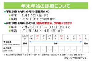 昨年同様、本年もインフルエンザが流行しています(予防接種は12/25(木)まで実施しています)。手洗い・うがい等で予防に努めてください。